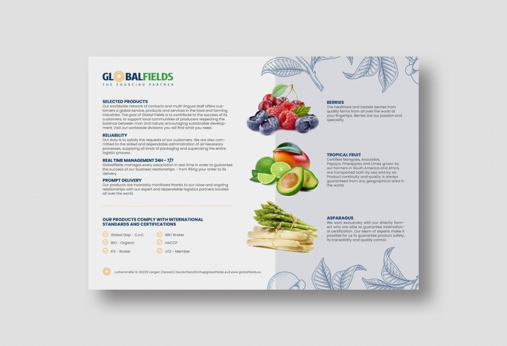 Abbiamo lavorato per Globalfields, il brand della freschezza, che in Germania commercializza e si occupa della logistica di piccoli frutti, asparagi e frutta tropicale.